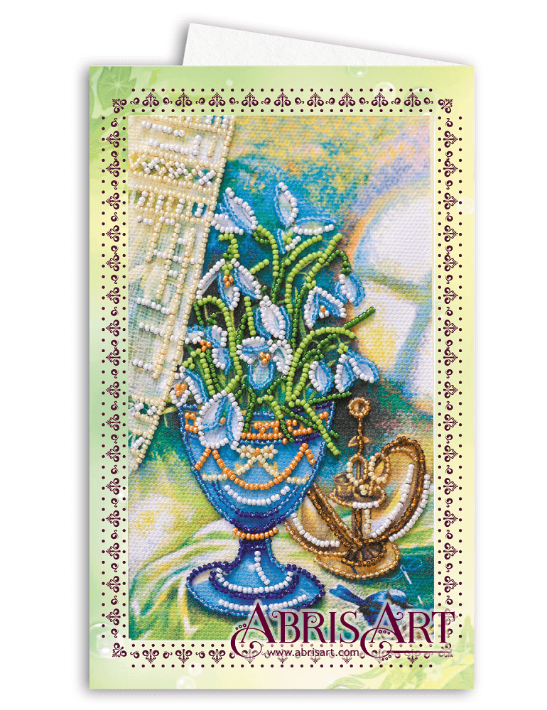 Набор для вышивания открытки-конверта микробисером Пролески, 8.4х14см, AOM-009, Абрис Арт