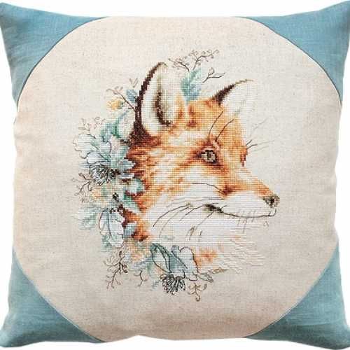 Набор для вышивки подушки счетным крестом Лисичка (арт. PB111) ТМ Luca-S содержит цветное фото готовой подушки, немецкую ткань для вышивания Zweigart, мулине Anchor, счетную схему, иглу, русскую инструкцию, а также молнию.