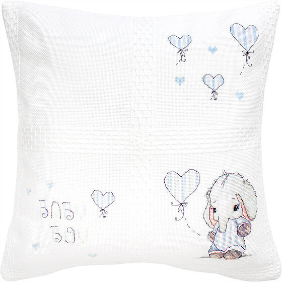 Набор для вышивки подушки счетным крестом Слоненок (арт.PB187) ТМ Luca-S содержит цветное фото готовой подушки, немецкую ткань для вышивания Palisade 14 ct. (101), мулине Anchor, счетную схему, иглу, русскую инструкцию.
