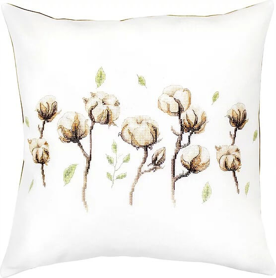 Набор для вышивки подушки счетным крестом Хлопок (арт.PB199) ТМ Luca-S содержит цветное фото готовой подушки, немецкую ткань для вышивания Lugana (100) 25 ct., мулине Anchor, счетную схему, иглу, русскую инструкцию.