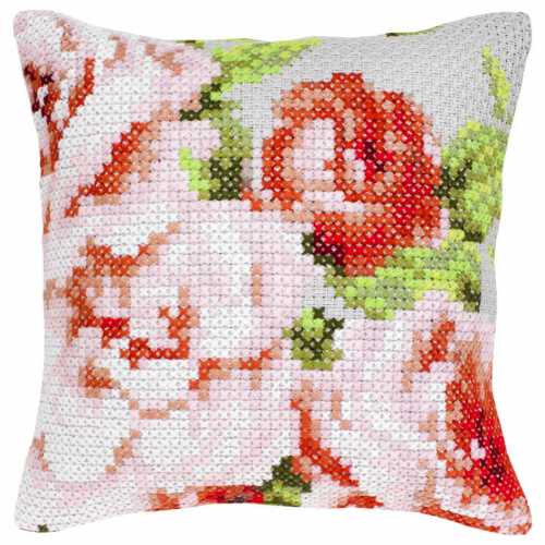 Набор для вышивки подушки счетным крестом Цветы 3 (арт.PB162) ТМ Luca-S содержит цветное фото готовой подушки, немецкую ткань для вышивания Tukestan Zweigart, акриловую нить, счетную схему, иглу, русскую инструкцию.