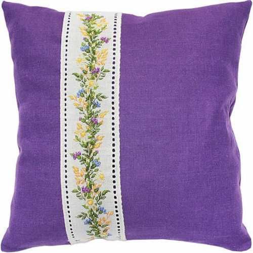 Набор для вышивки подушки счетным крестом Цветы (арт. PB123) ТМ Luca-S содержит цветное фото готовой подушки, немецкую ткань для вышивания Zweigart, мулине Anchor, счетную схему, иглу, русскую инструкцию, а также молнию.