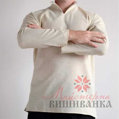 Модель мужской сорочки под вышивку нитками или бисером "Козак" (лен), арт. СЧ-01-ЛЬ, ТМ Майстерна Вишиванка пошита с домотканного полотна №30. Для вышивки рекомендуем использовать флизелин с нанесенной схемой или накладную канву.