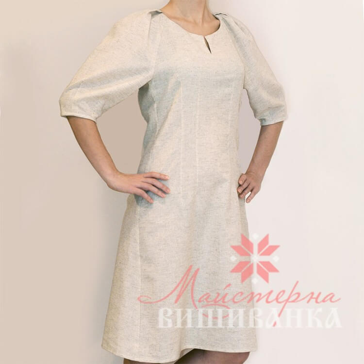 Модель платья под вышивку нитками или бисером "Конвалія" (лен), арт. СК-04-ЛЬ, ТМ Майстерна Вишиванка пошита с домотканного полотна №30. Для вышивки рекомендуем использовать флизелин с нанесенной схемой или накладную канву.
