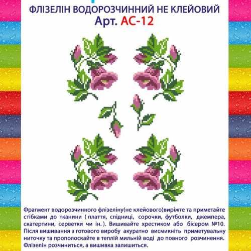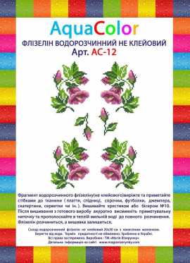 Водорастворимый флизелин Колокольчики АС-12 (не клеевой) для вышивки крестом или бисером (Preciosa №10). Для вышивания на любой одежде аккуратно вырежьте и приметайте фрагмент флизелина с нанесенной схемой. После окончания работы, уберите нить и прополоскайте готовое изделие в теплой, мыльной воде до полного растворения флизелина.