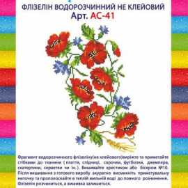 Водорастворимый флизелин Маки АС-41 (не клеевой) для вышивки крестом или бисером (Preciosa №10). Для вышивания на любой одежде аккуратно вырежьте и приметайте фрагмент флизелина с нанесенной схемой. После окончания работы, уберите нить и прополоскайте готовое изделие в теплой, мыльной воде до полного растворения флизелина.