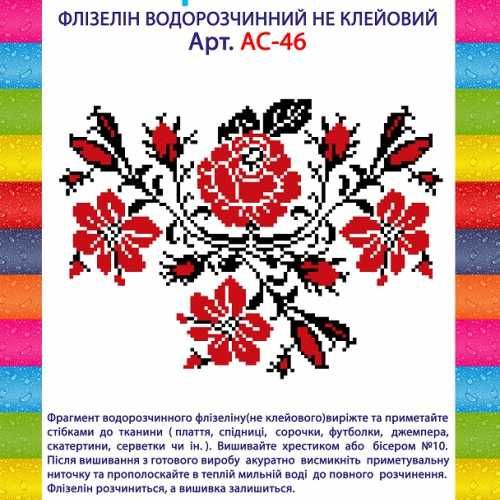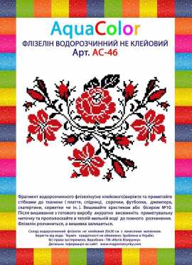 Водорастворимый флизелин Орнамент АС-46 (не клеевой) для вышивки крестом или бисером (Preciosa №10). Для вышивания на любой одежде аккуратно вырежьте и приметайте фрагмент флизелина с нанесенной схемой. После окончания работы, уберите нить и прополоскайте готовое изделие в теплой, мыльной воде до полного растворения флизелина.