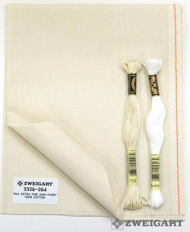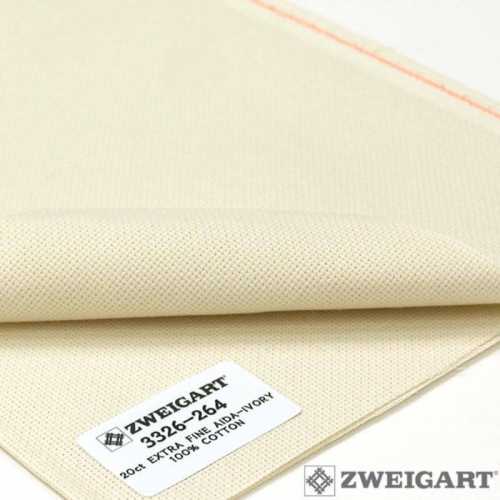 Ткань для вышивания Zweigart Aida extra fine 20, арт. 3326-264, цвет 264 (слоновая кость), ширина рулона 110см