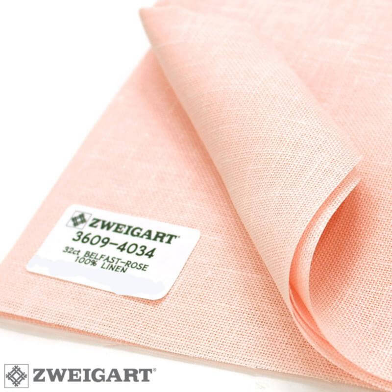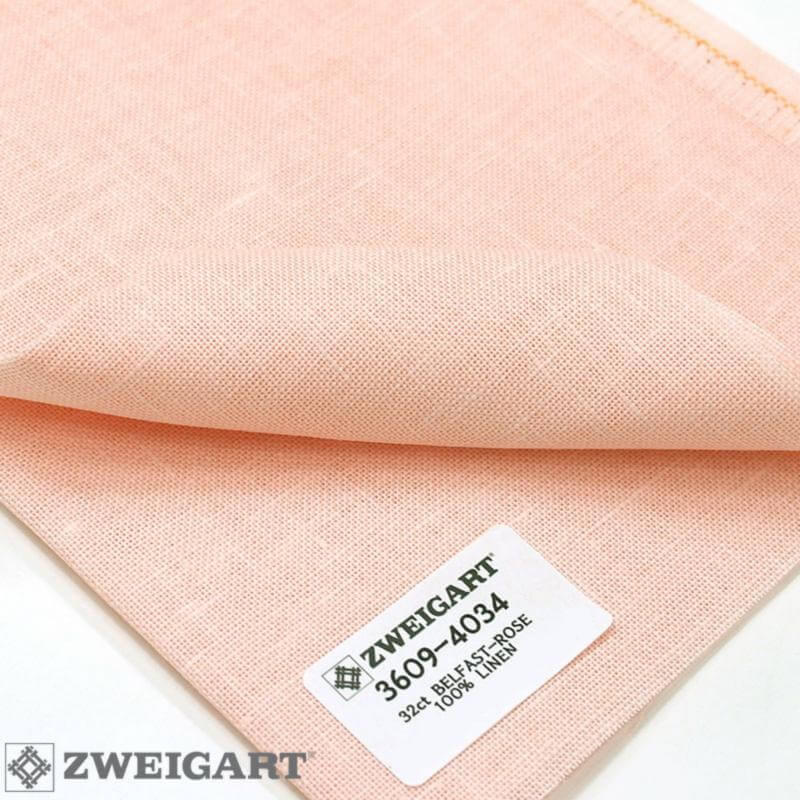 Ткань для вышивания Zweigart Belfast Linen 32, арт. 3609-4034, цвет 4034 (нежно-розовый), ширина рулона 140см