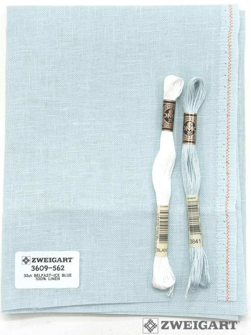Ткань для вышивания Zweigart Belfast 32, арт. 3609-562, цвет 562 (голубой лед), ширина рулона 140см