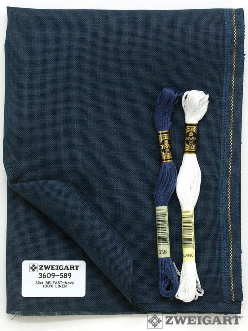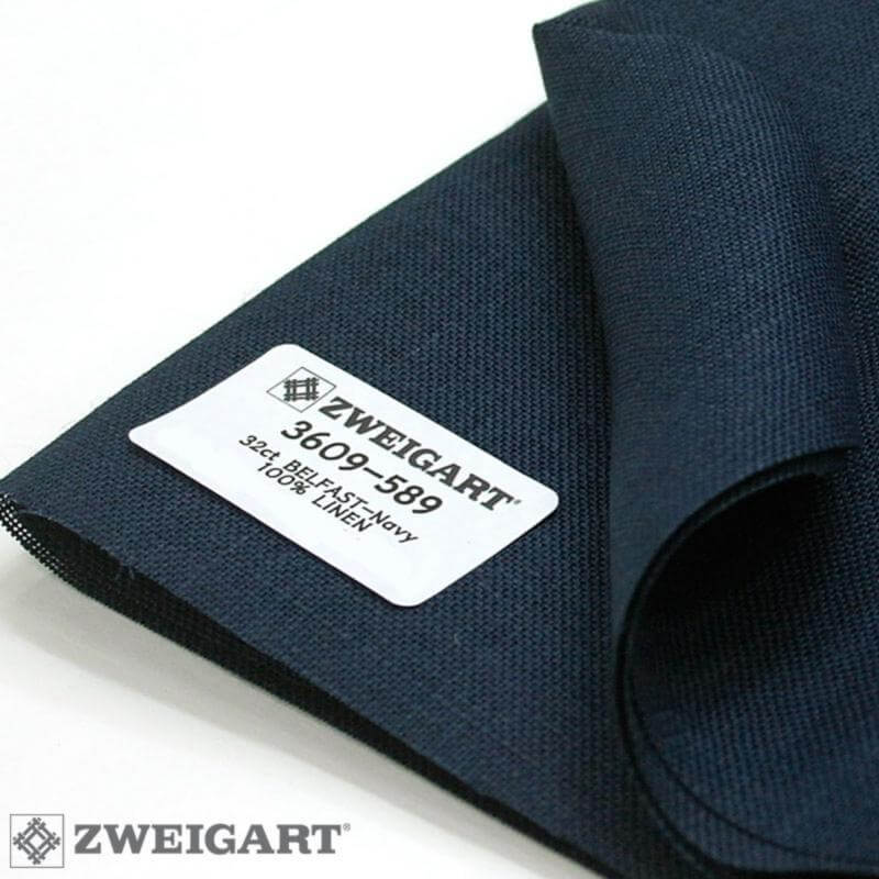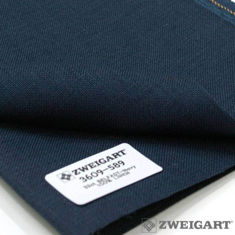 Ткань для вышивания Zweigart Belfast 32, арт. 3609-589, цвет 589 (темно-синий), ширина рулона 140см