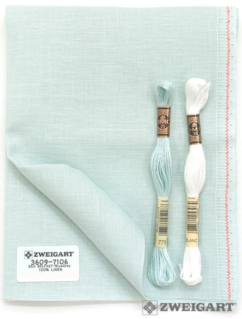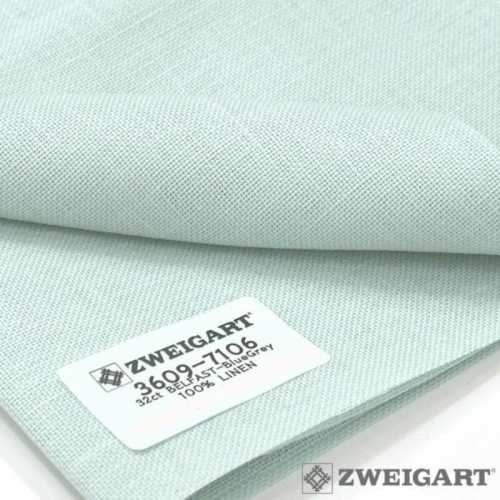 Ткань для вышивания Zweigart Belfast 32, арт. 3609-7106, цвет 7106 (серо-голубой), ширина рулона 140см