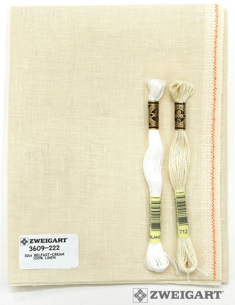 Ткань для вышивания Zweigart Belfast 32, арт. 3609-222, цвет 222 (сливочный), ширина рулона 140см