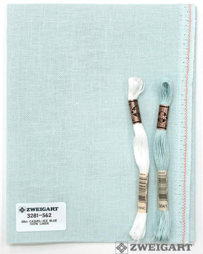 Ткань для вышивания Zweigart Cashel Aida 28, арт. 3281-562, цвет 562 (голубой лед), ширина рулона 140см