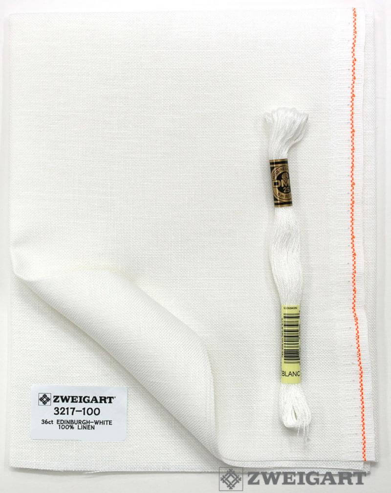 Ткань для вышивания Zweigart Edinburgh 36, арт. 3217-100, цвет 100 (белый), ширина рулона 140см