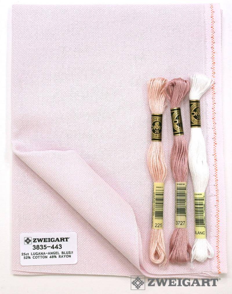 Ткань для вышивания Zweigart Lugana 25, арт. 3835-443, цвет 443 (бледно-розовый), ширина рулона 140см