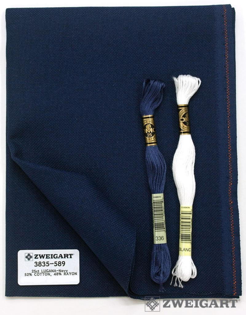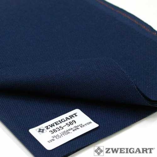 Ткань для вышивания Zweigart Lugana 25, арт. 3835-589, цвет 589 (темно-синий), ширина рулона 140см