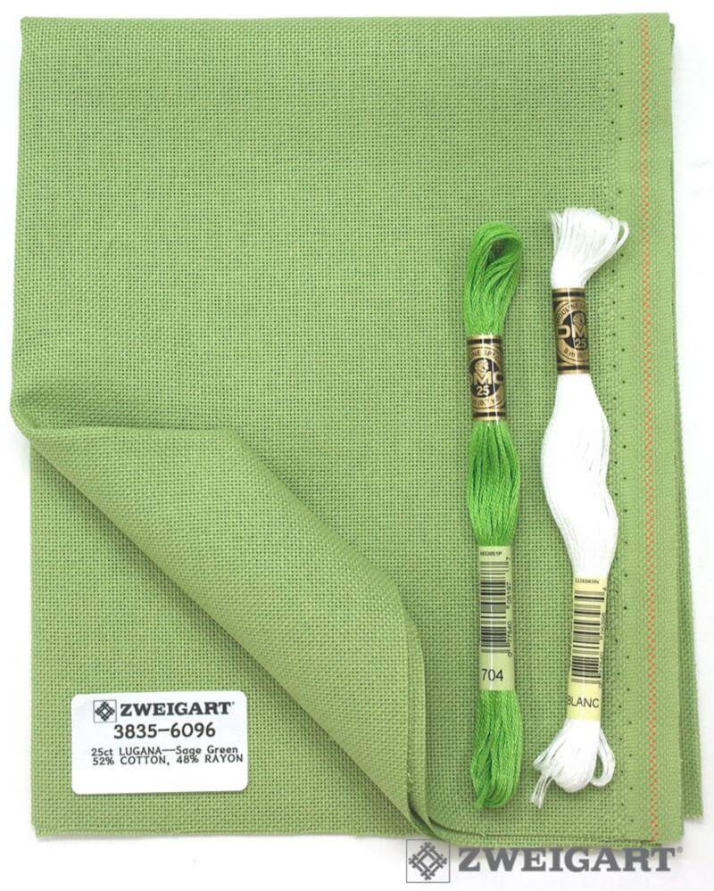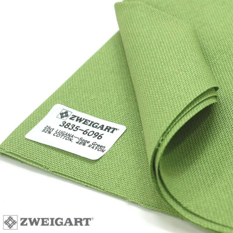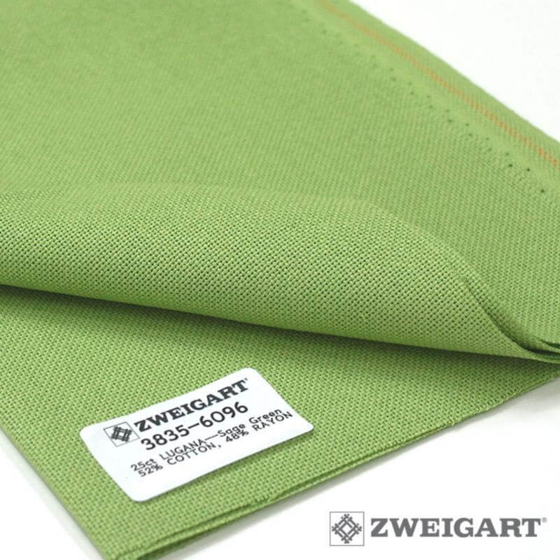 Ткань для вышивания Zweigart Lugana 25, арт. 3835-6096, цвет 6096 (киви), ширина рулона 140см
