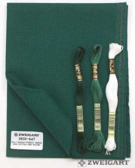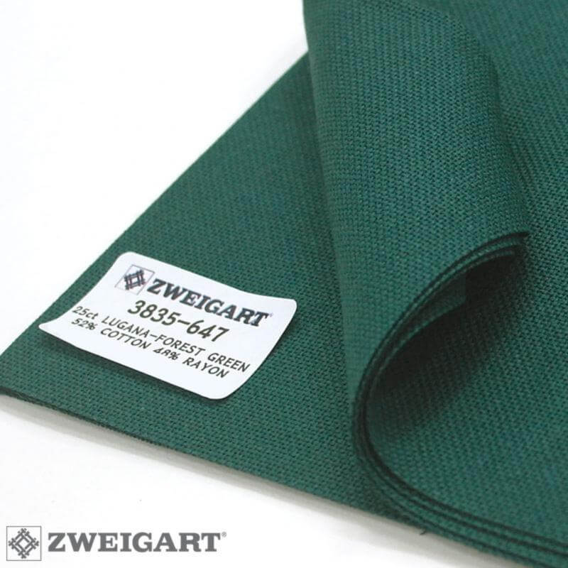 Ткань для вышивания Zweigart Lugana 25, арт. 3835-647, цвет 647 (зеленый лес), ширина рулона 140см