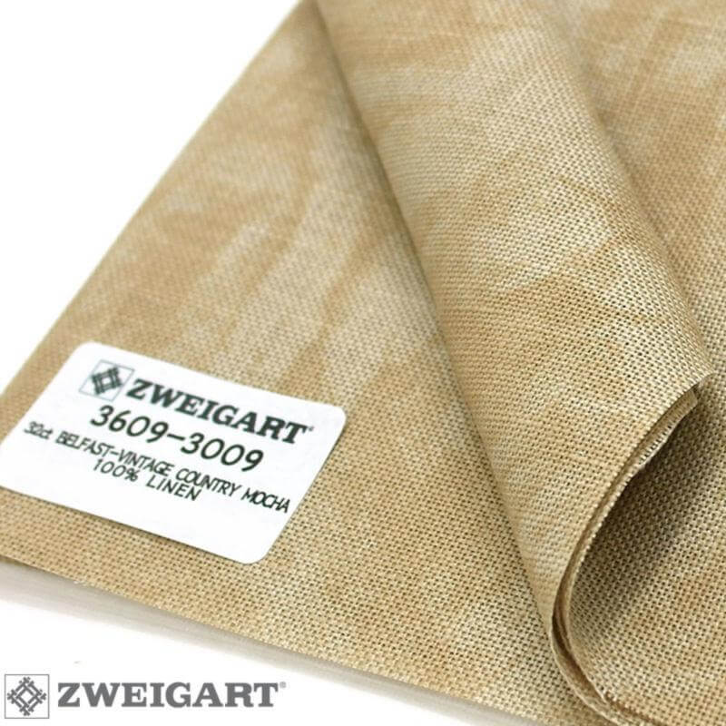 Ткань для вышивания Zweigart Vintage Belfast Linen 32, арт. 3609-3009, цвет 3009 (мокко винтажный), ширина рулона 140см