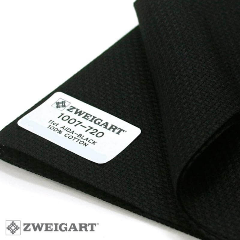 Ткань для вышивания Zweigart Perl-Aida 11, арт. 1007-720, цвет 720 (черный), ширина рулона 110см