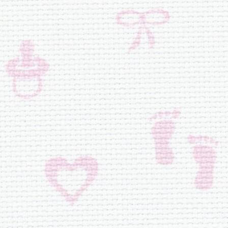 Ткань для вышивания Zweigart Aida Petit Point 14, арт. 3706-4249, цвет 4249 (белый с розовым детским принтом), ширина рулона 110см