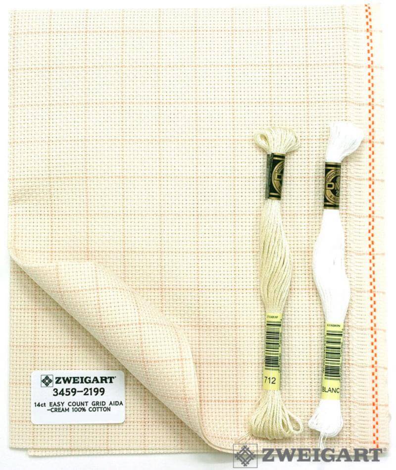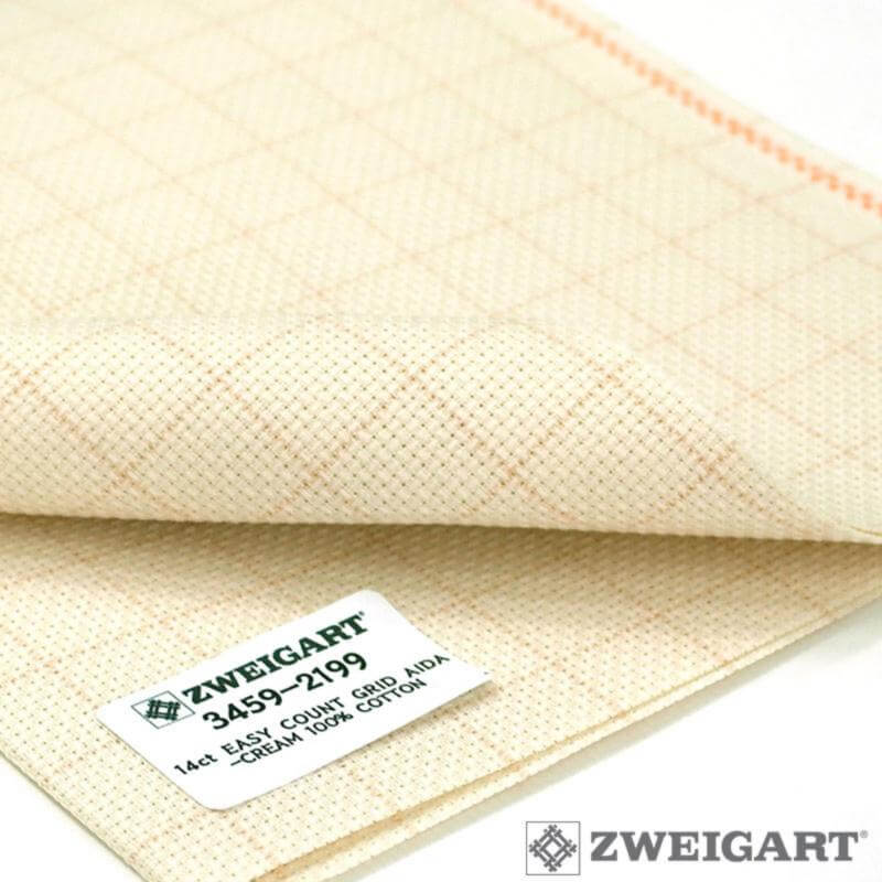 Ткань для вышивания Zweigart Easy Count Grid Aida 14, арт. 3459-2199, цвет 2199 (кремовая со смываемой разметкой), ширина рулона 110см