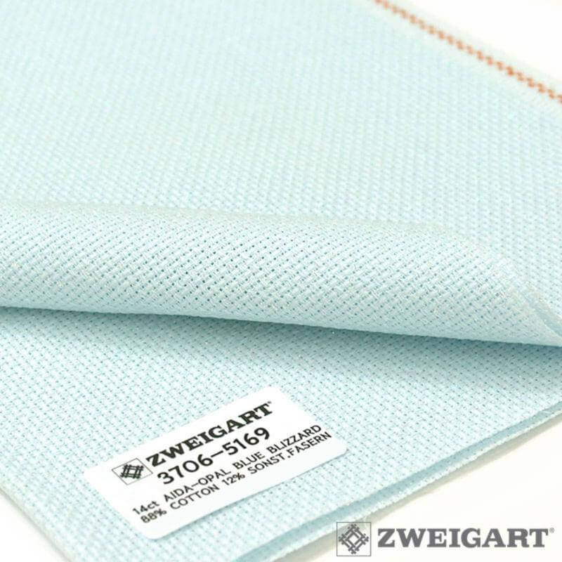 Ткань для вышивания Zweigart Star-Aida 14, арт. 3706-5169, цвет 5169 (голубой с радужным люрексом), ширина рулона 110см