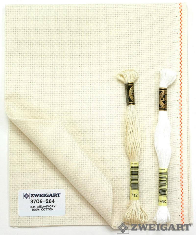 Ткань для вышивания Zweigart Stern-Aida 14, арт. 3706-264, цвет 264 (слоновая кость), ширина рулона 110см