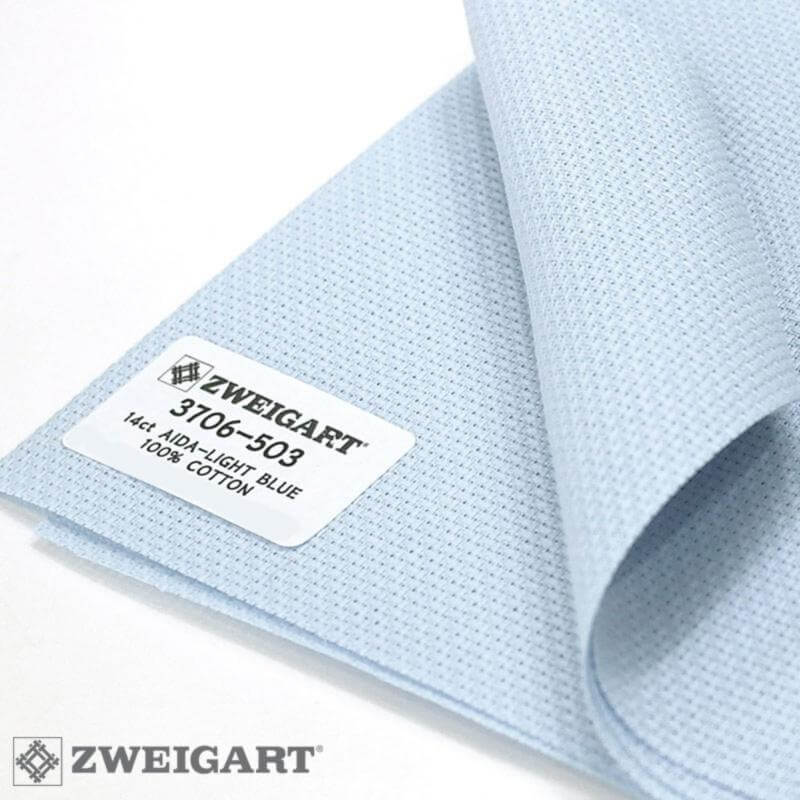Ткань для вышивания Zweigart Stern-Aida 14, арт. 3706-503, цвет 503 (небесно-голубой), ширина рулона 150см