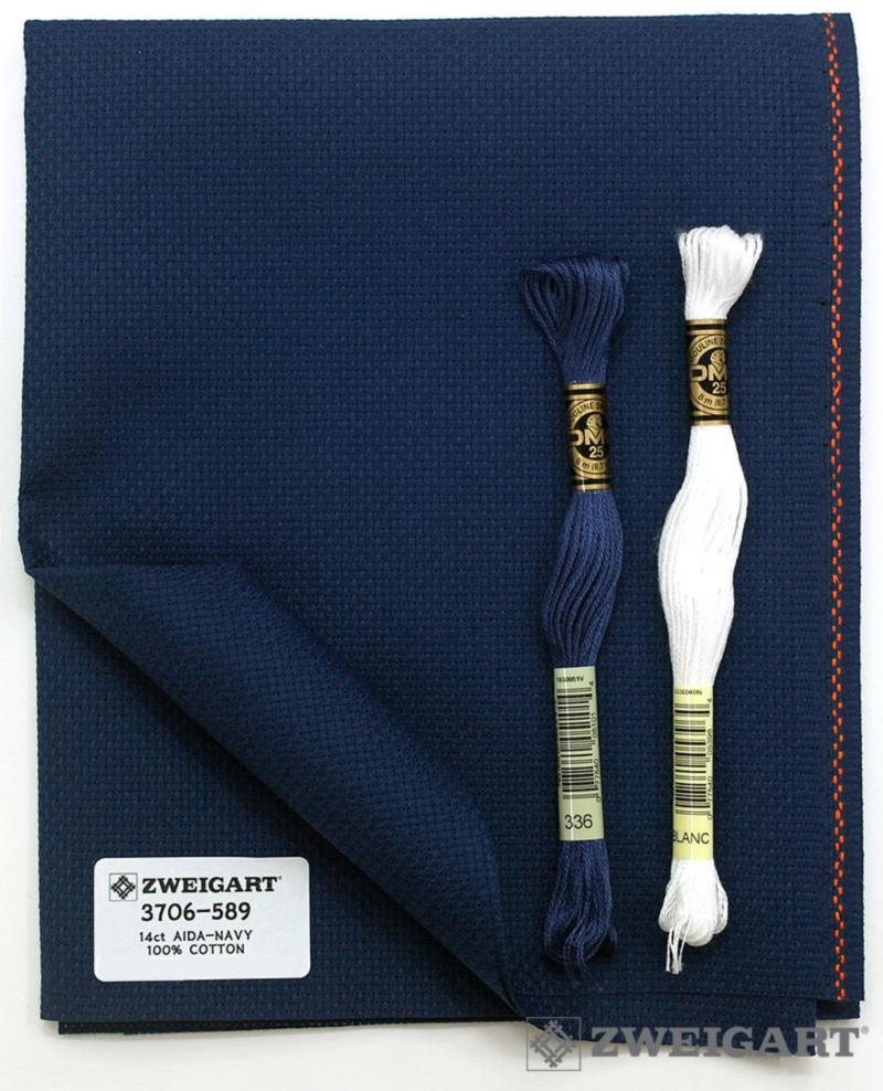 Ткань для вышивания Zweigart Stern-Aida 14, арт. 3706-589, цвет 589 (синий), ширина рулона 110см