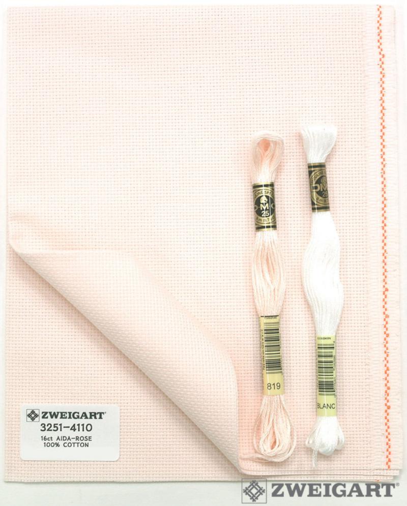 Ткань для вышивания Zweigart Stern-Aida 16, арт. 3251-4110, цвет 4110 (розовый), ширина рулона 110см