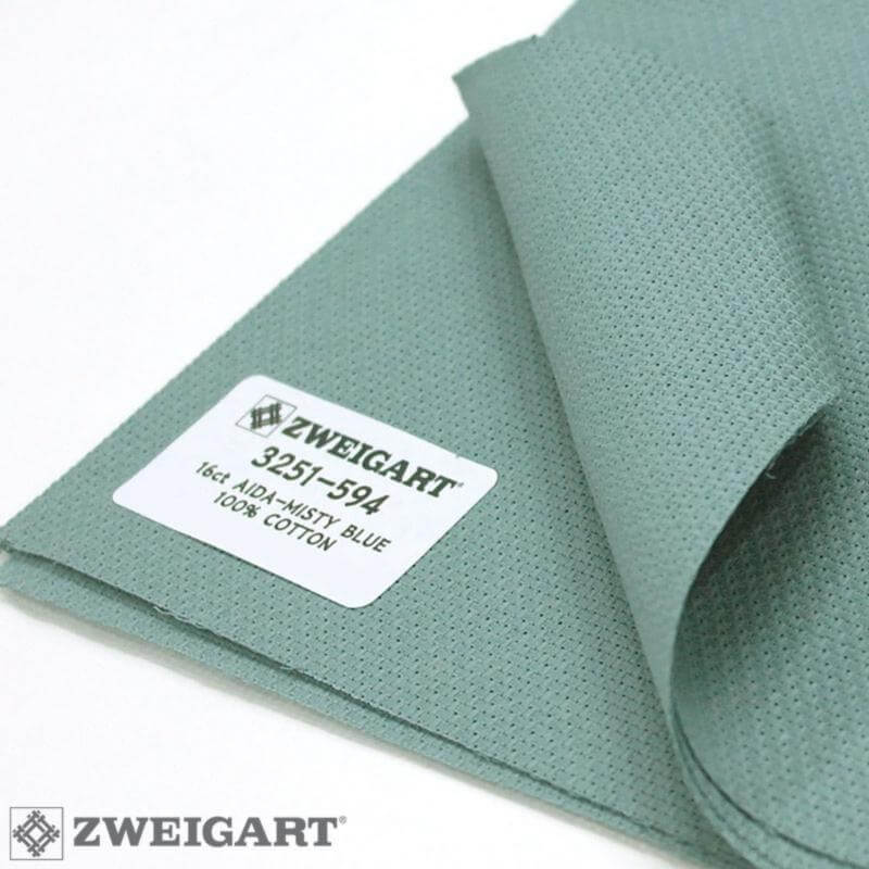 Ткань для вышивания Zweigart Stern-Aida 16, арт. 3251-594, цвет 594 (туманно-синий), ширина рулона 110см