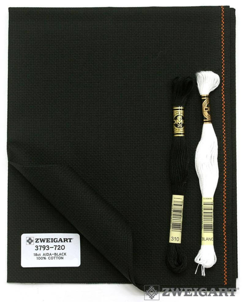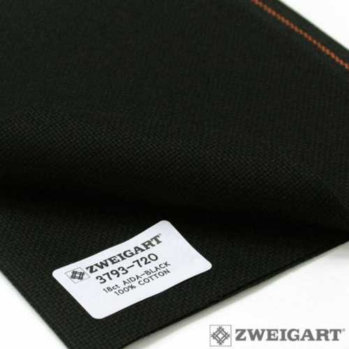 Ткань для вышивания Zweigart Fein-Aida 18, арт. 3793-720, цвет 720 (черный), ширина рулона 110см