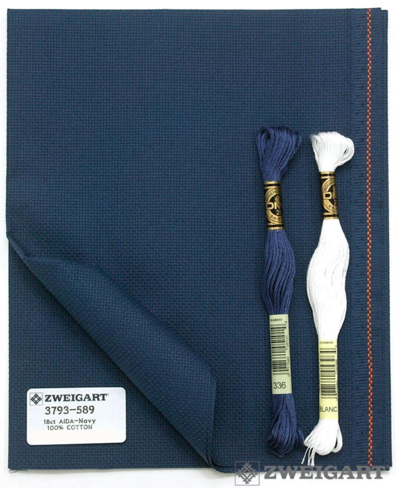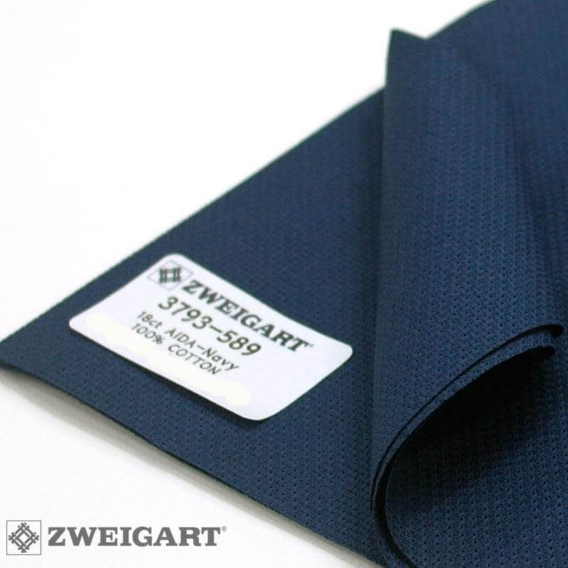 Ткань для вышивания Zweigart Fein-Aida 18, арт. 3793-589, цвет 589 (темно-синий), ширина рулона 110см