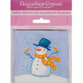 Набор для вышивания бисером на магните Снеговик, 9*9см, FLA-174, Волшебная страна