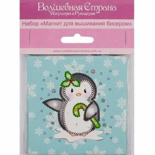 Набор для вышивания бисером на магните Пингвин, 9*9см, FLA-177, Волшебная страна