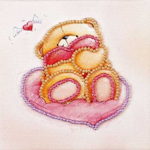 Набор для вышивания бисером на магните Медвежонок с сердцем, 9*9см, FLA-081, Волшебная страна