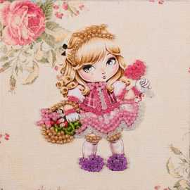 Набор для вышивания бисером на магните Девочка с корзинкой, 9*9см, Волшебная страна