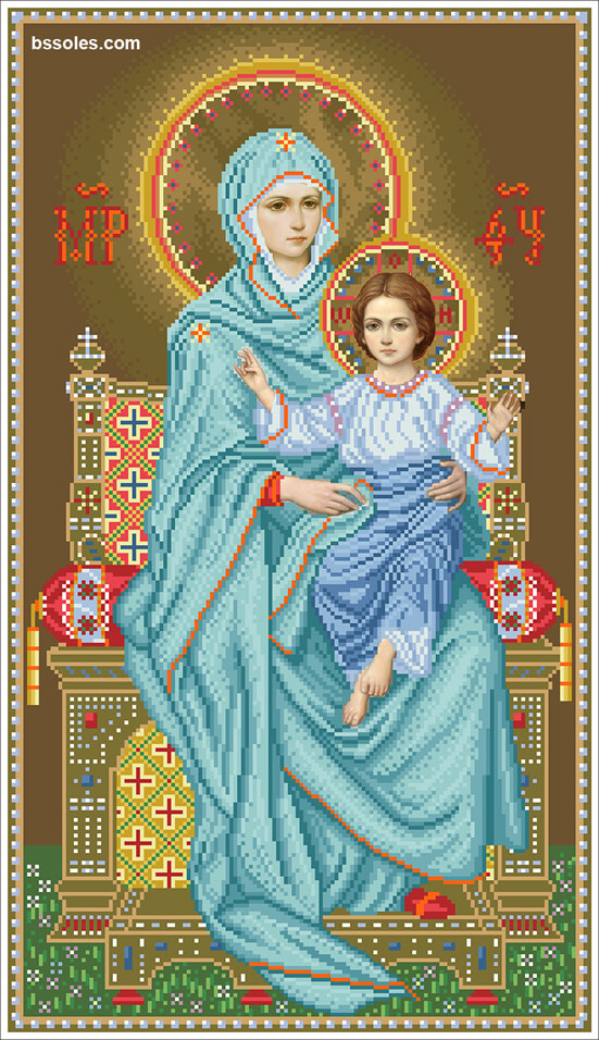 Набор для вышивания бисером Богородица на троне, арт. БТ-51, содержит схему с высокой детализацией, выполненную на плотном сатиновом шелке (пр-во Германия), и с краями, обработанными оверлоком, чешский бисер Preciosa и иглу.
