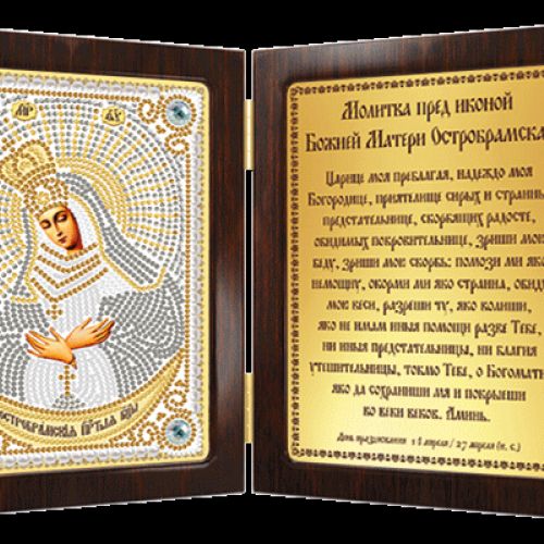 Набор для вышивки бисером Богородица Остробрамская состоит из основы для вышивки Perfostitch (с перфорацией и рисунком), бисера Miyuki (Япония), фигурной рамки, иглы и нитки для вышивания бисером, цветной схемы и инструкции.