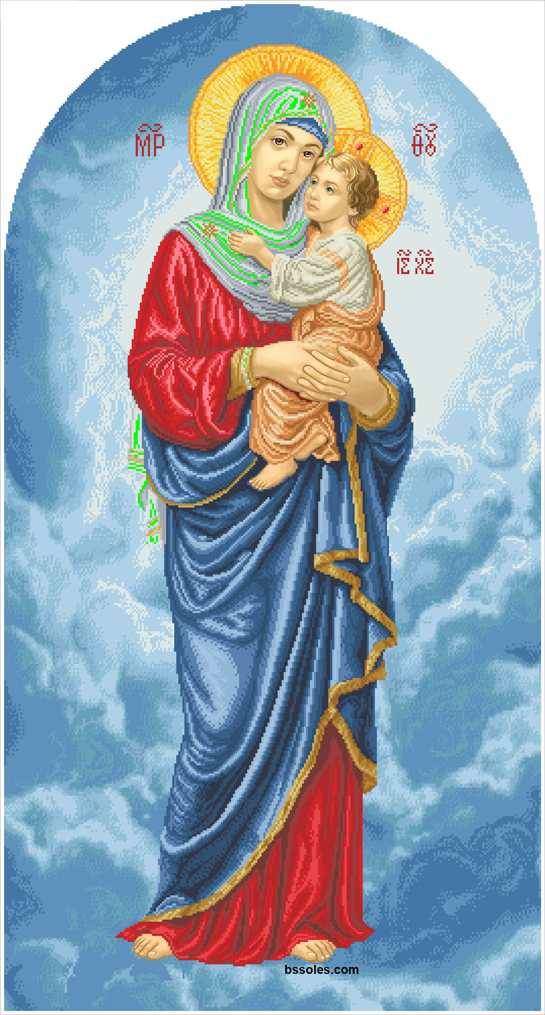Набор для вышивания бисером Богородица (наместная), арт. БН-В-239, содержит схему с высокой детализацией, выполненную на плотном сатиновом шелке (пр-во Германия), и с краями, обработанными оверлоком, чешский бисер Preciosa и иглу.
