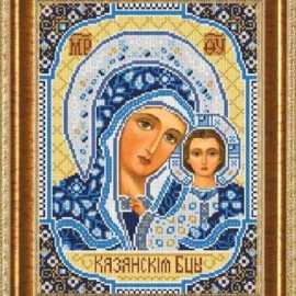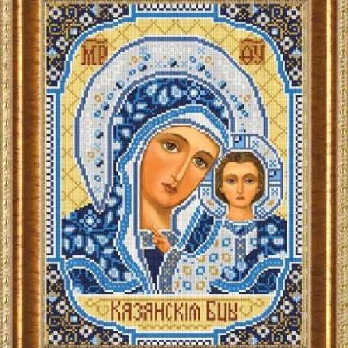 Набор для вышивки бисером Богородица Казанская компании Новая Слобода состоит из габардина с нанесенным изображением, бисера Two Birds (Китай), иглы для вышивки бисером, подробной инструкции.