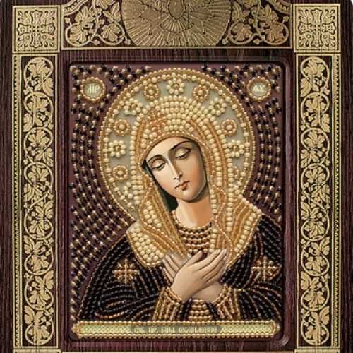 Набор для вышивки бисером Богородица Умиление состоит из основы для вышивки Perfostitch (с перфорацией и рисунком), бисера Preciosa (Чехия), фигурной рамки, иглы и нитки для вышивания бисером, цветной схемы и инструкции.
