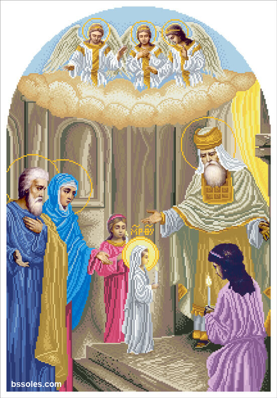 Набор для вышивания бисером Введение Богородицы (иконостас), арт. І-ВБ-116, содержит схему с высокой детализацией, выполненную на плотном сатиновом шелке (пр-во Германия), и с краями, обработанными оверлоком, чешский бисер Preciosa и иглу.