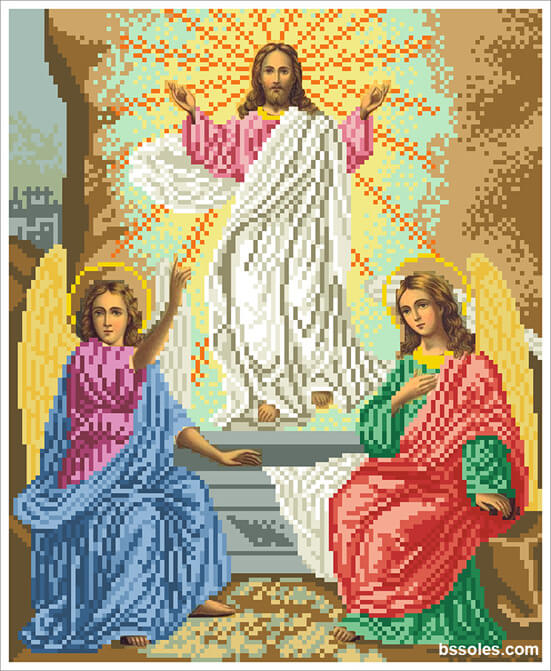Набор для вышивания бисером Воскресение Господне, арт. ВГ-21, содержит схему с высокой детализацией, выполненную на плотном сатиновом шелке (пр-во Германия), и с краями, обработанными оверлоком, чешский бисер Preciosa и иглу.