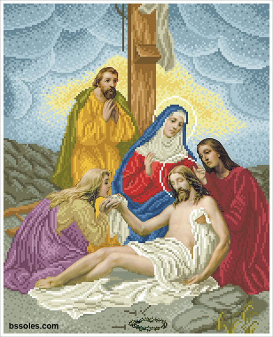 Набор для вышивания бисером Иисуса снимают с креста, арт. ХД-13-107, содержит схему с высокой детализацией, выполненную на плотном сатиновом шелке (пр-во Германия), и с краями, обработанными оверлоком, чешский бисер Preciosa и иглу.