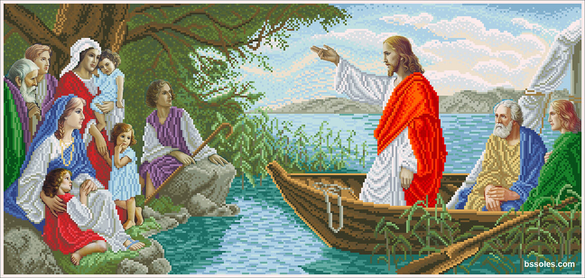 Набор для вышивания бисером Иисус в лодке, арт. ІЧ-75, содержит схему с высокой детализацией, выполненную на плотном сатиновом шелке (пр-во Германия), и с краями, обработанными оверлоком, чешский бисер Preciosa и иглу.