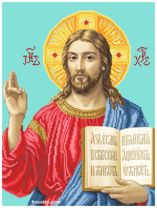 Набор для вышивания бисером Иисус (наместная), арт. ІН-93, содержит схему с высокой детализацией, выполненную на плотном сатиновом шелке (пр-во Германия), и с краями, обработанными оверлоком, чешский бисер Preciosa и иглу.