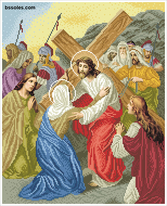 Набор для вышивания бисером Иисус встречает свою Матерь, арт. ХД-04-98, содержит схему с высокой детализацией, выполненную на плотном сатиновом шелке (пр-во Германия), и с краями, обработанными оверлоком, чешский бисер Preciosa и иглу.
